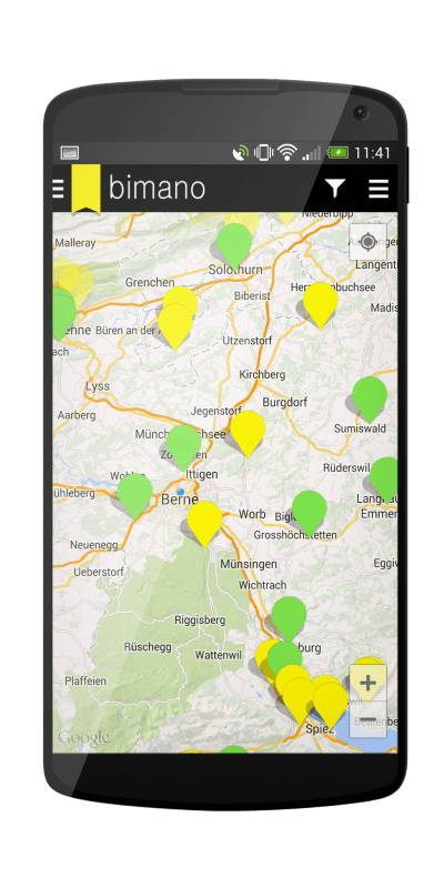 Mit Bimano müssen Kletterer nicht länger schwere Bücher auf sich tragen. Mobiltelefone tragen bereits zur Sicherheit bei Outdoor Sportarten bei und werden nun zusätzlich zur persönlichen Bibliothek. Die Bimano App enthält Karten, Texte und visuelle Beschreibungen der Routen, Informationen über Transportmöglichkeiten und Sicherheitshinweise. Zusätzlich zu den in der kostenlosen App vorhandenen Locations kann der Benutzer Informationen für weitere Routen der ausgewählten Location kaufen.
