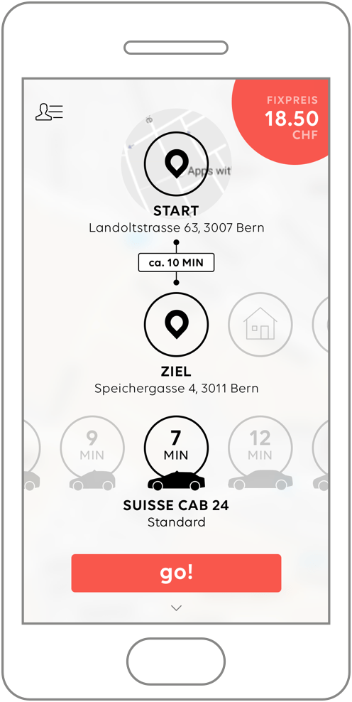 Bis Ende 2017 wird go! in der ganzen Schweiz präsent sein. go! wurde für die Yourmile AG entwickelt und ist die offizielle Lösung von Taxisuisse, der Fachgruppe Taxi des Schweizerischen Nutzfahrzeugverbandes (Astag). Sie wird im Frühling 2017 noch vor Uber in die neue SBB-Reiseplaner-App eingebunden sein.