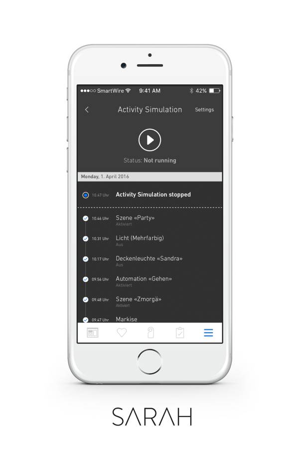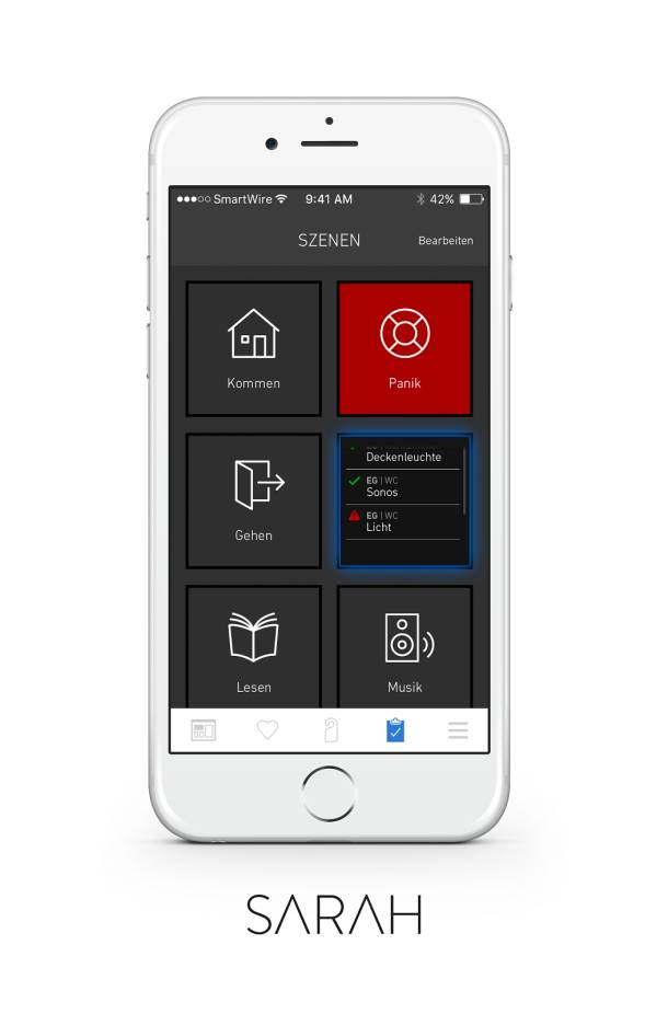 SVEN vereint die Smart Home Funktionen wie die Regelung von Temperatur und Licht, mit Services wie online- und Wetterdienste. Klingelt es an der Tür, wird SVEN automatisch zur Gegensprechanlage und somit zum digitalen Assistenten der Wohnung. Verlässt der Bewohner seine Wohnung, kann er mit einer Berührung des ‘Gehen’ Buttons alle elektrischen Geräte ausschalten und gleichzeitig eine Anwesenheitssimulation auslösen.