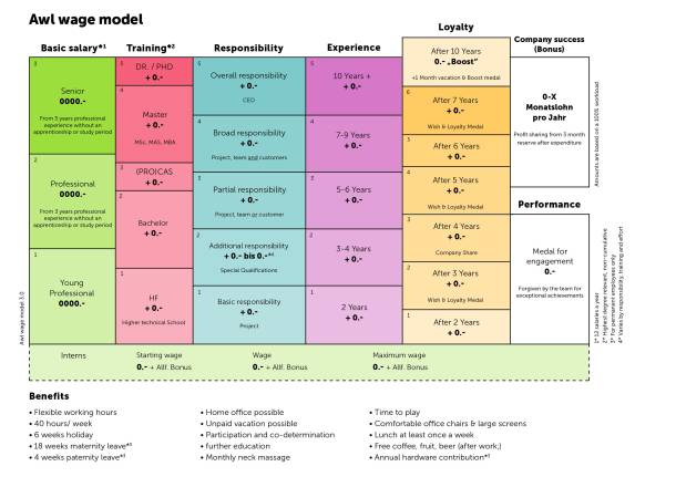 The figures in the model can be adjusted. When the company is doing better, either a success bonus can be distributed or the basic salary adjusted. Other companies, too, can enter their own figures into the model for a customised solution.