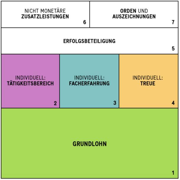 Même si nous n'affichons pas tous les salaires sur un tableau noir, le modèle est le même pour tous. Chacun peut calculer à quoi ressemblent les salaires des autres. Le propre salaire peut être évalué au fil des ans puisqu’il évolue d’année en année.