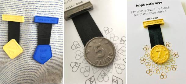 Un système de distinctions nous permet d’exprimer avec ludisme notre reconnaissance mutuelle et de récompenser des prestations remarquables. Nous attribuons ces distinctions pour des prestations exceptionnelles lors d’un projet et pour la fidélité à l’entreprise. Lors de la remise des médailles d’ancienneté que l’on accorde pour la première fois à partir de 3 ans passés dans l’entreprise, on peut exprimer un vœu qui sera exaucé par la société. Ces choses jouent un grand rôle. C’est du moins ce que démontrent de nouveau des études. L’effet de titres honorifiques fut étudié au centre de recherches d’IBM à Zurich et dans un centre d'appels. Le résultat : qui reçoit une distinction travaille mieux par la suite. Qui n’en obtient pas ne travaille pas plus mal. Le plaisir prime pour nous lors de ce rituel.